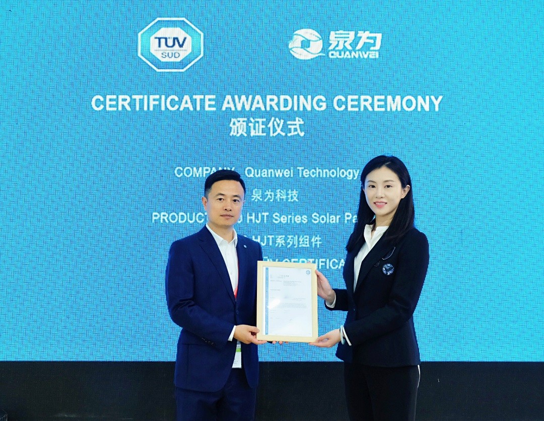 该证书的收获是对乐鱼体育app官方网站该款产品性能及可靠性的双重认可,有力证明了乐鱼体育app在异质结光伏组件产品的研发和安全设计能力。一定程度上说,收获TÜV南德颁发的全球异质结电池光伏组件认证证书,证明了乐鱼体育app官方网站的研发能力和对产品安全性能的重视。