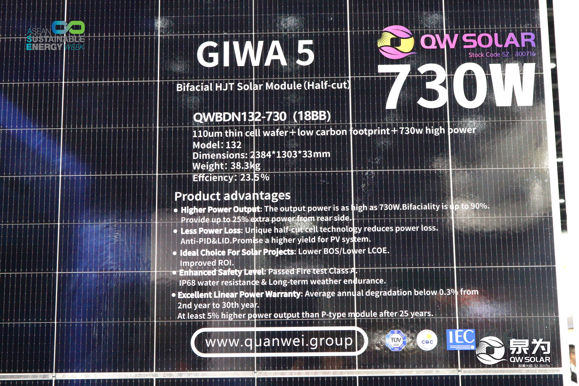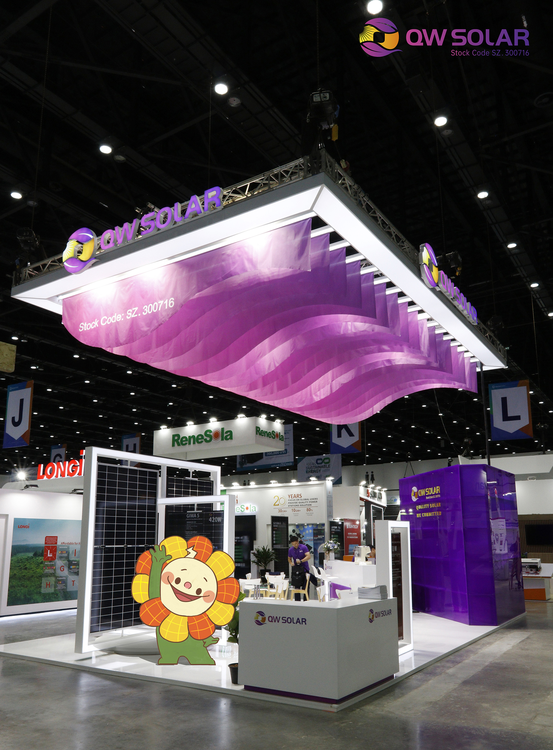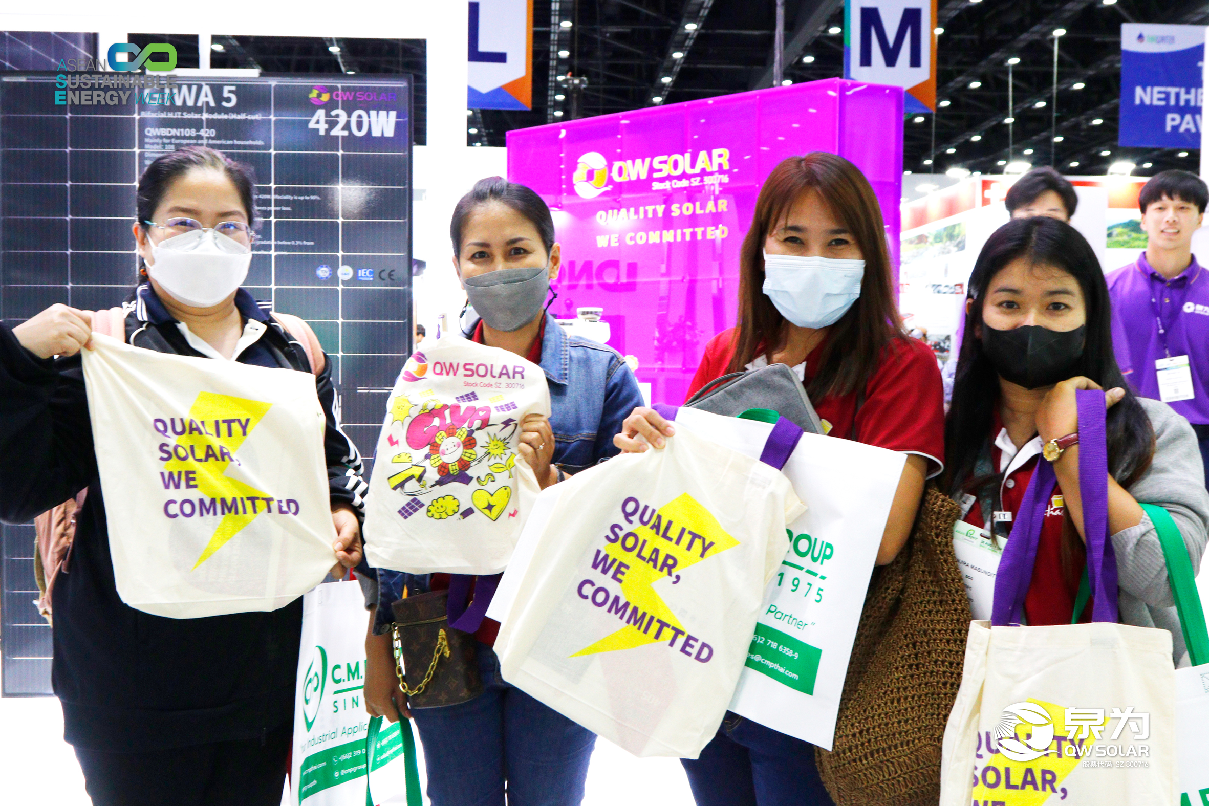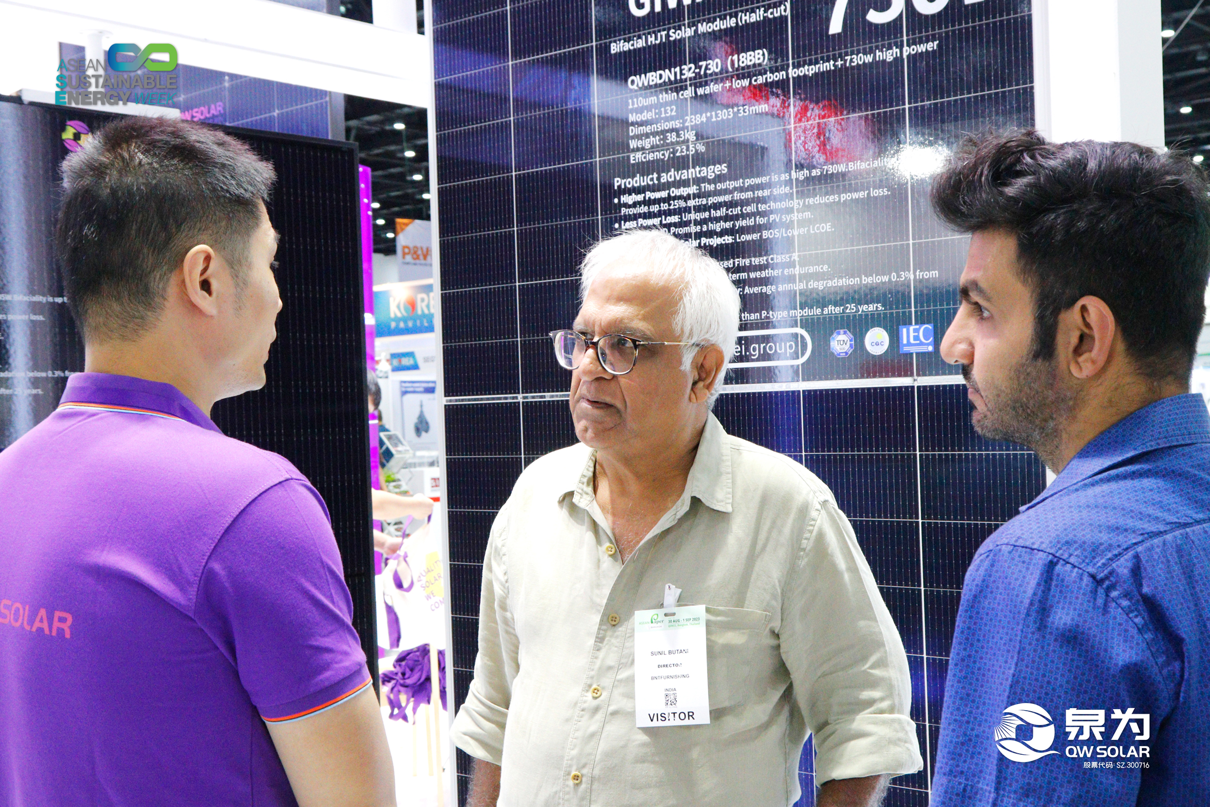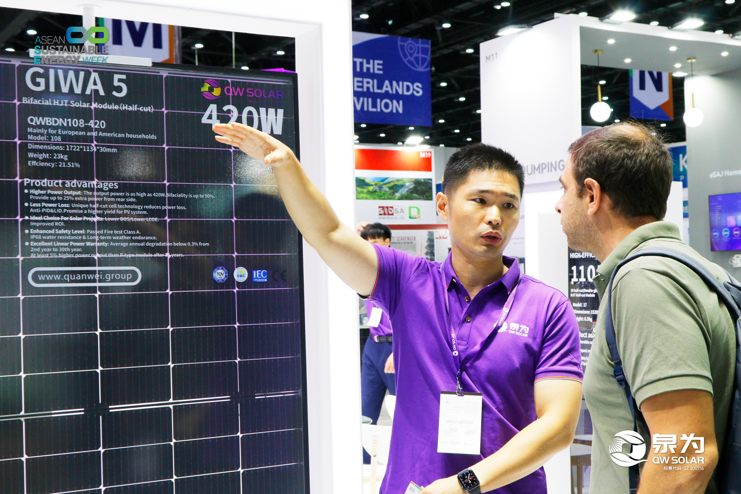 8月30日,泰国曼谷,乐鱼体育app(SZ. 300716)携核心产品——“泉耀”系列高效异质结(HJT)组件产品于诗丽吉王后国家会议中心举办的东盟可再生能源周展正式亮相(QSNCC二号馆, L11展位)并在东南亚重要的行业盛会上展示了其最新的光伏产品和解决方案,引起了现场观众和业内专家的广泛关注。乐鱼体育app此次的展台搭建充分运用了新近发布的全新配色和设计理念,令人耳目一新、过目不忘,充分体现了乐鱼体育对客户感受的充分重视和审美+科技的完美融合,一经亮相便成为了全场瞩目的焦点。