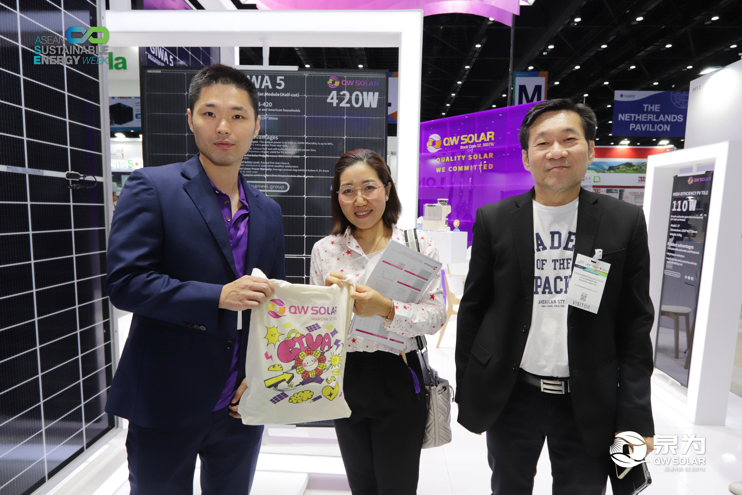 东南亚地区作为光伏组件的应用地,其环境具有典型的高温高湿特征,以泰国为例,当地建设有具有全球前沿能力的水面光伏工程,其对高品质组件在高温高湿以及其它环境要素影响下的稳定性以及使用性价比方面要求很高,对组件商从生产到质控以及安装、维保等方面的系统性要求突显。乐鱼体育此次主推的异质结产品,在符合客户需求的系统参数方面,拥有卓越的能力。这也是现场采购商深度询问的内容,亦是本地采购商聚集的焦点。